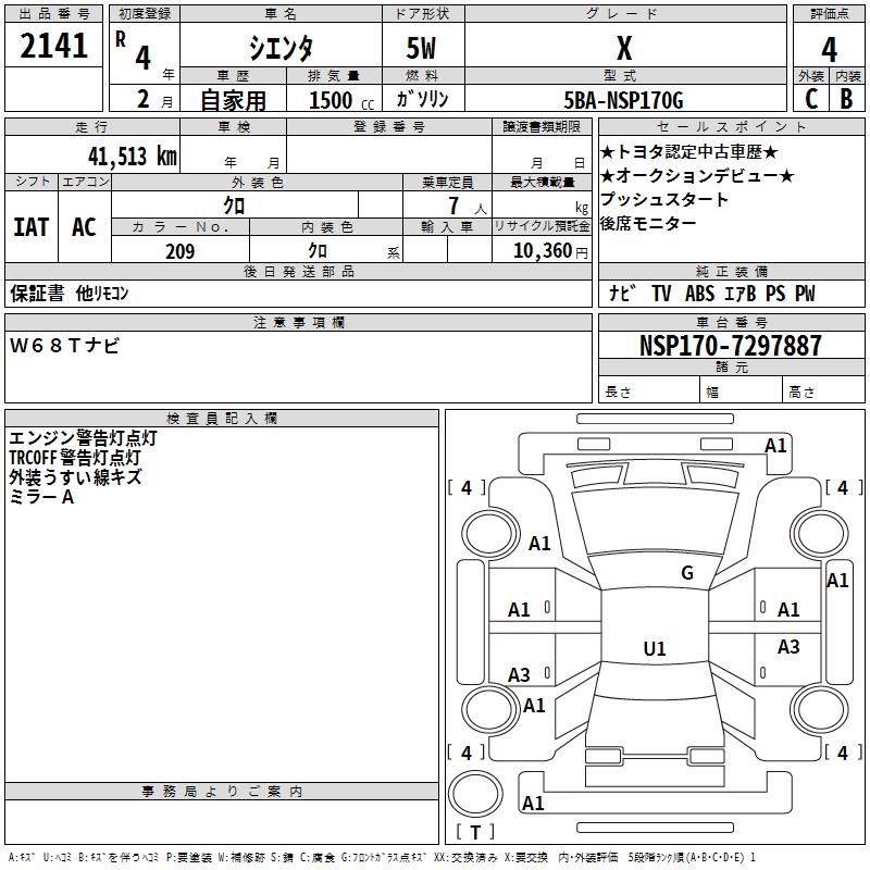 TOYOTA SIENTA X - лот 2141
