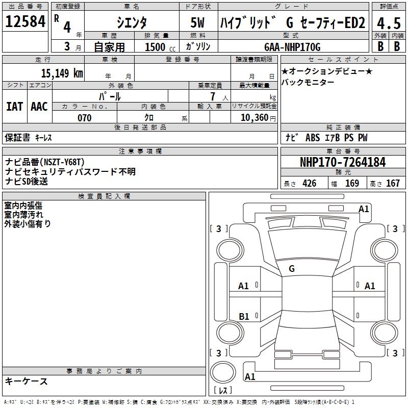 TOYOTA SIENTA HYBRID G SAFETY -ED2 - лот 12584