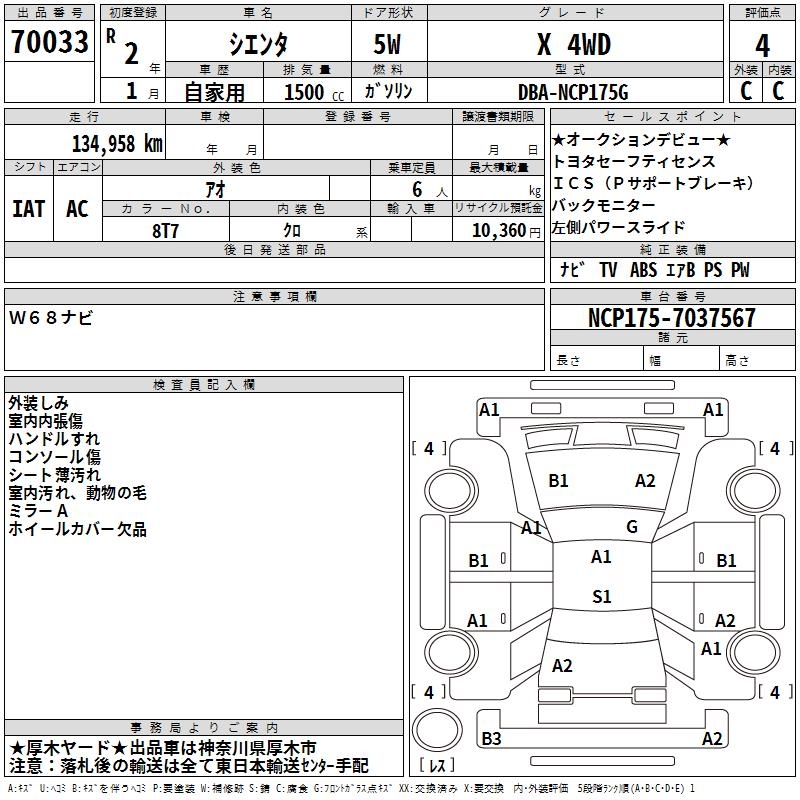 TOYOTA SIENTA X 4WD - лот 70033