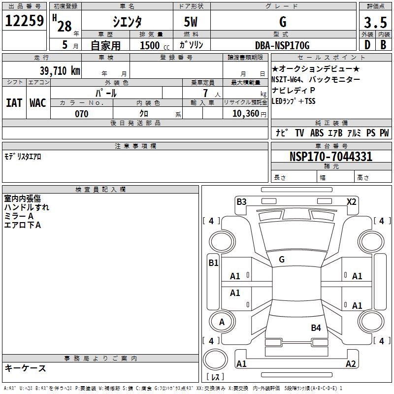 TOYOTA SIENTA G - лот 12259