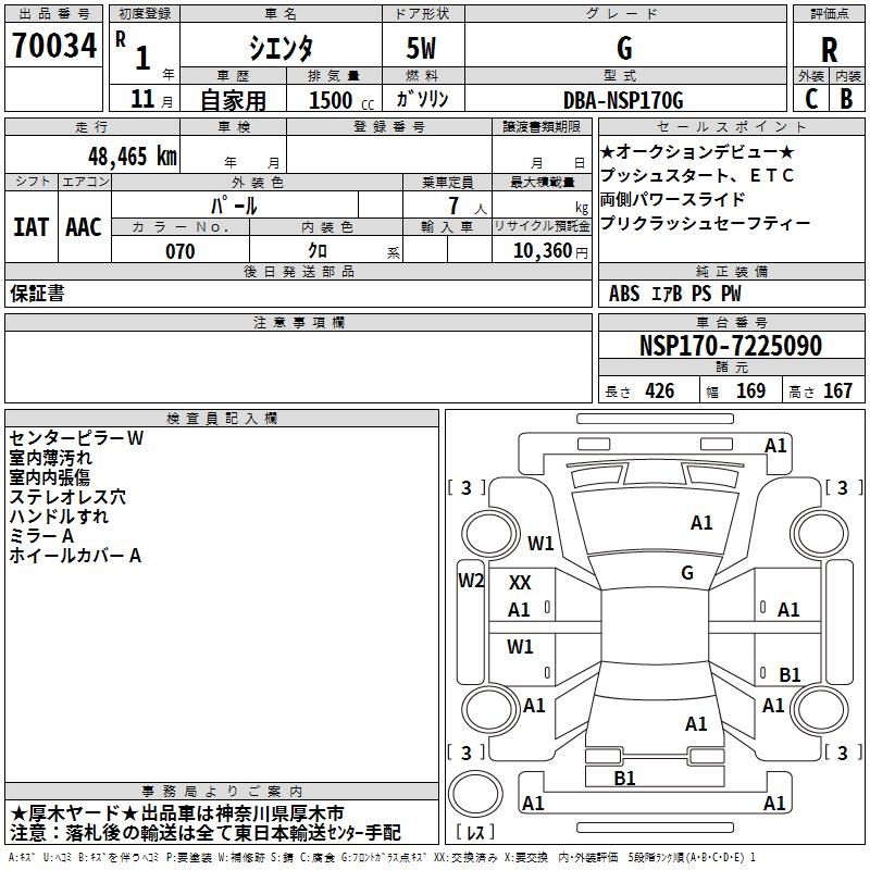 TOYOTA SIENTA G - лот 70034