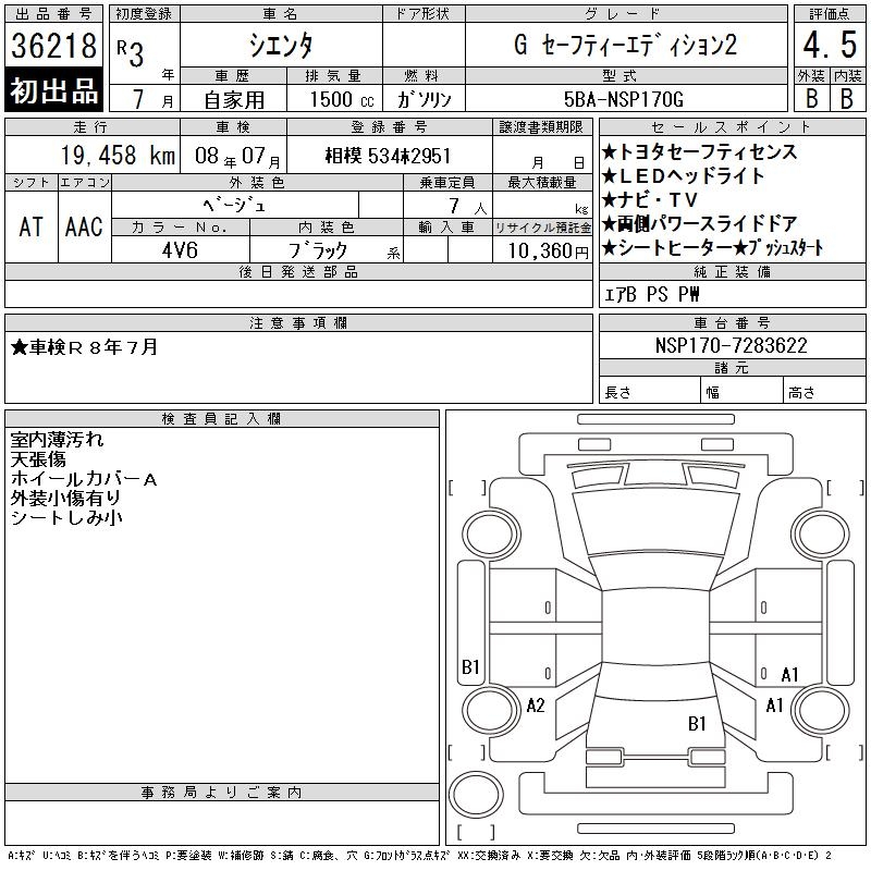 TOYOTA SIENTA G SAFETY - EDITION 2 - лот 36218