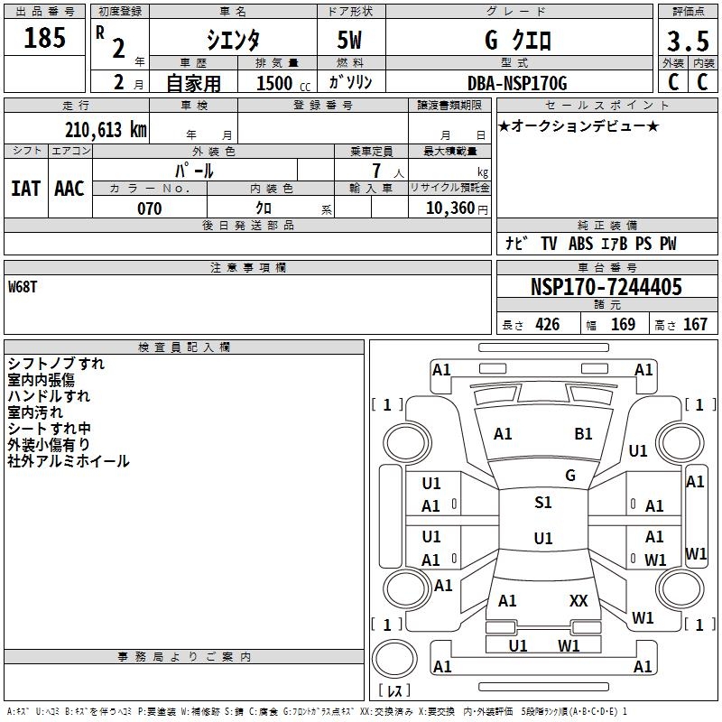 TOYOTA SIENTA GKERO - лот 185