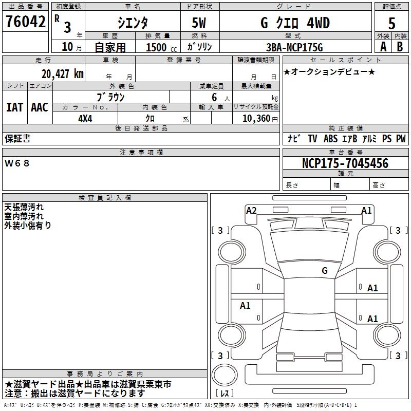 TOYOTA SIENTA GKERO4WD - лот 76042
