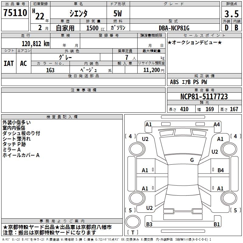 TOYOTA SIENTA - лот 75110