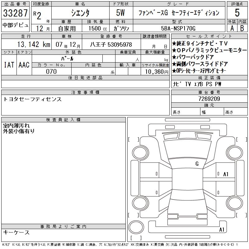 TOYOTA SIENTA FAN BASE G SAFETY -ED - лот 33287