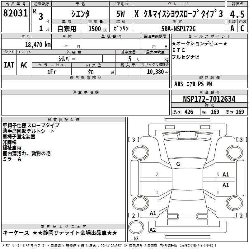 TOYOTA SIENTA XKRU MY S USE SLOPE TYPE 3 - лот 82031
