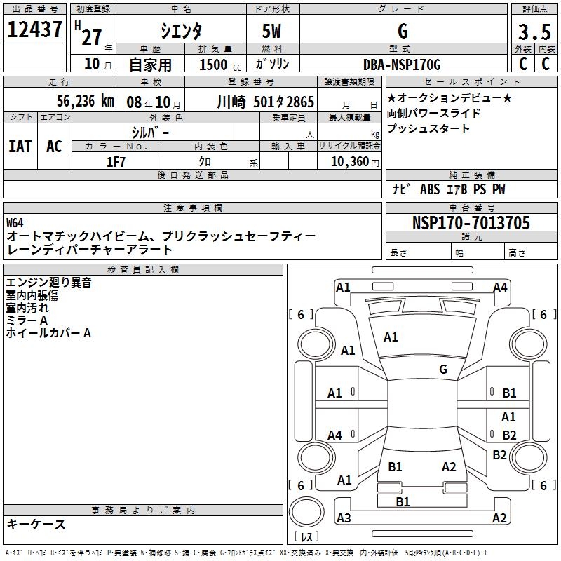 TOYOTA SIENTA G - лот 12437