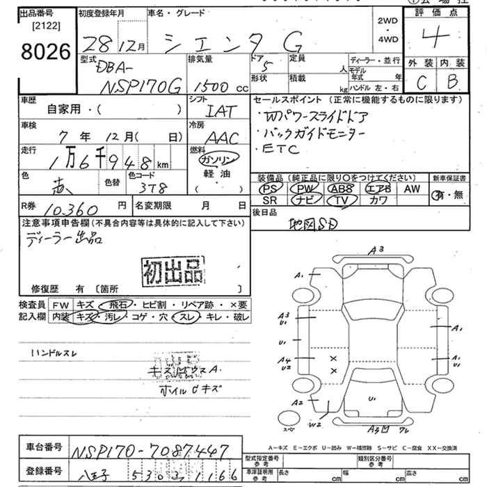 TOYOTA SIENTA G - лот 8026
