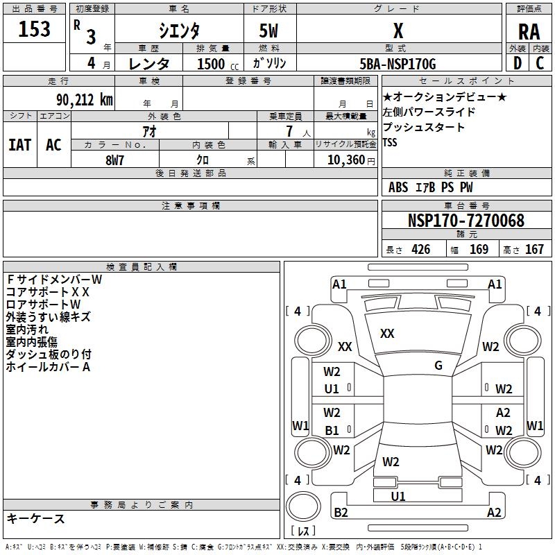 TOYOTA SIENTA X - лот 153