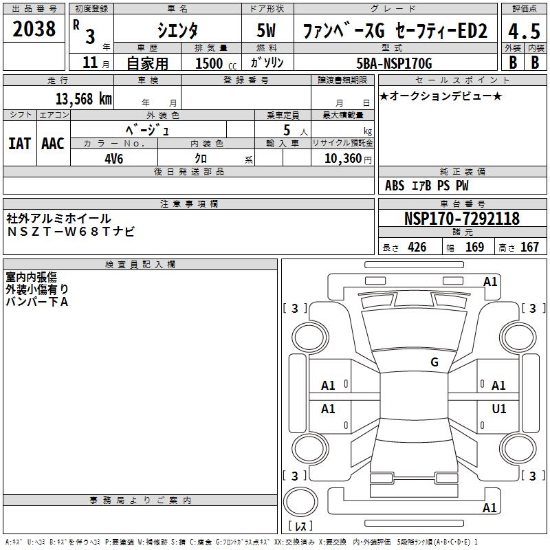 TOYOTA SIENTA FAN BASE G SAFETY -ED2 - лот 2038