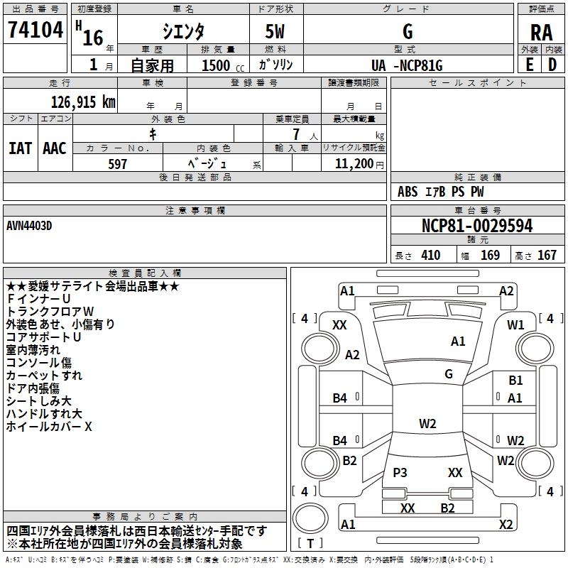 TOYOTA SIENTA G - лот 74104