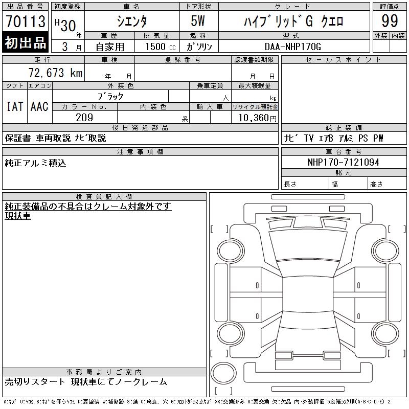 TOYOTA SIENTA HYBRID GKERO - лот 70113