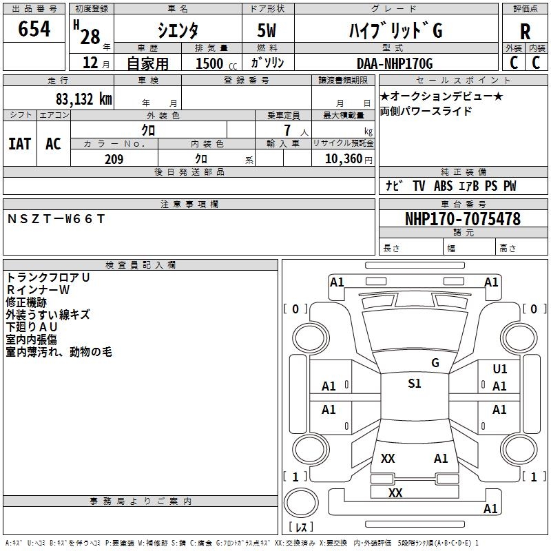 TOYOTA SIENTA HYBRID G - лот 654
