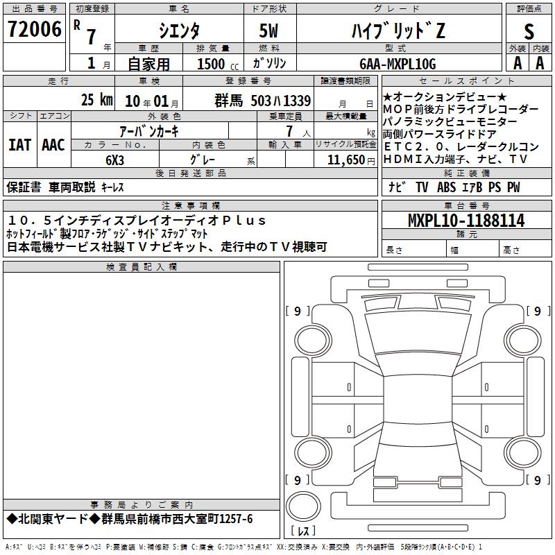 TOYOTA SIENTA HYBRID Z - лот 72006
