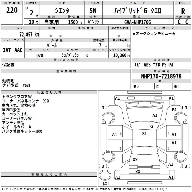 TOYOTA SIENTA HYBRID GKERO - лот 220