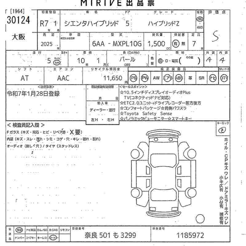 TOYOTA SIENTA HYBRID Z - лот 30124