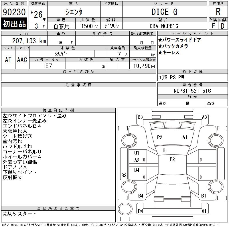 TOYOTA SIENTA DICE-G - лот 90230
