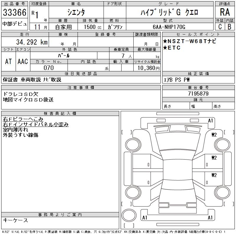 TOYOTA SIENTA HYBRID GKERO - лот 33366