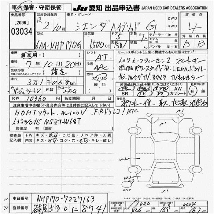 TOYOTA SIENTA HYBRID G - лот 3034