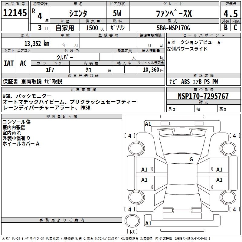 TOYOTA SIENTA FAN BASE X - лот 12145