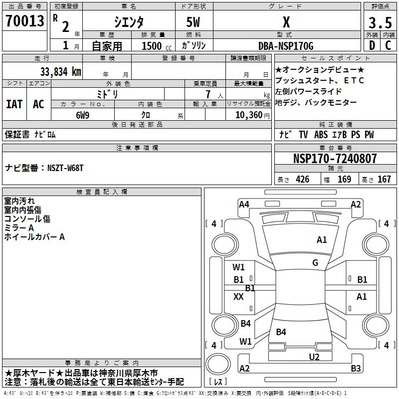 TOYOTA SIENTA X - лот 70013