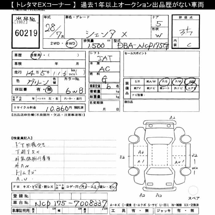 TOYOTA SIENTA 4WD X - лот 60219