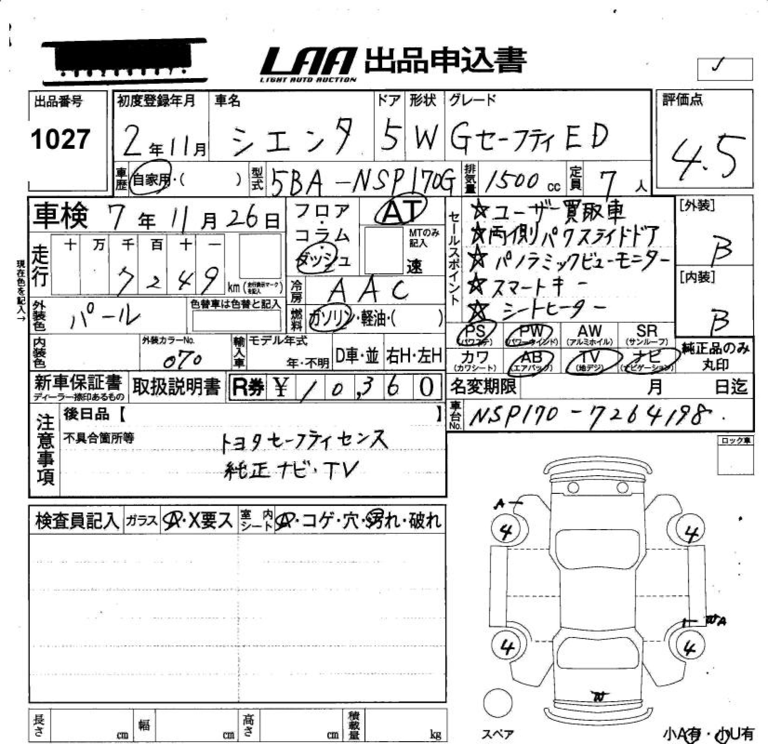 TOYOTA SIENTA G SAFETY - EDITION - лот 1027