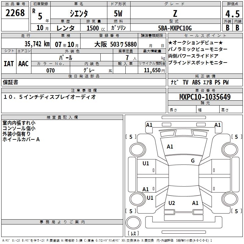 TOYOTA SIENTA Z - лот 2268