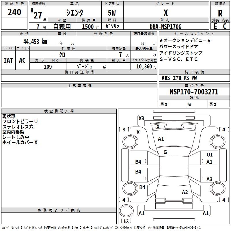 TOYOTA SIENTA X - лот 240