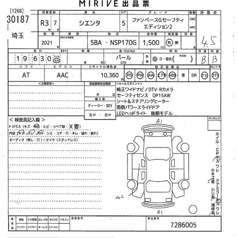 TOYOTA SIENTA FAN BASE G SAFETY EDITION 2 - лот 30187