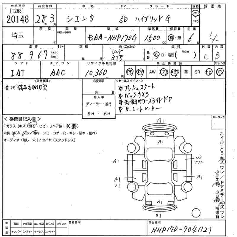 TOYOTA SIENTA HYBRID G - лот 20148