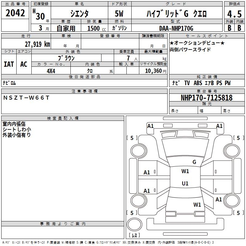 TOYOTA SIENTA HYBRID GKERO - лот 2042