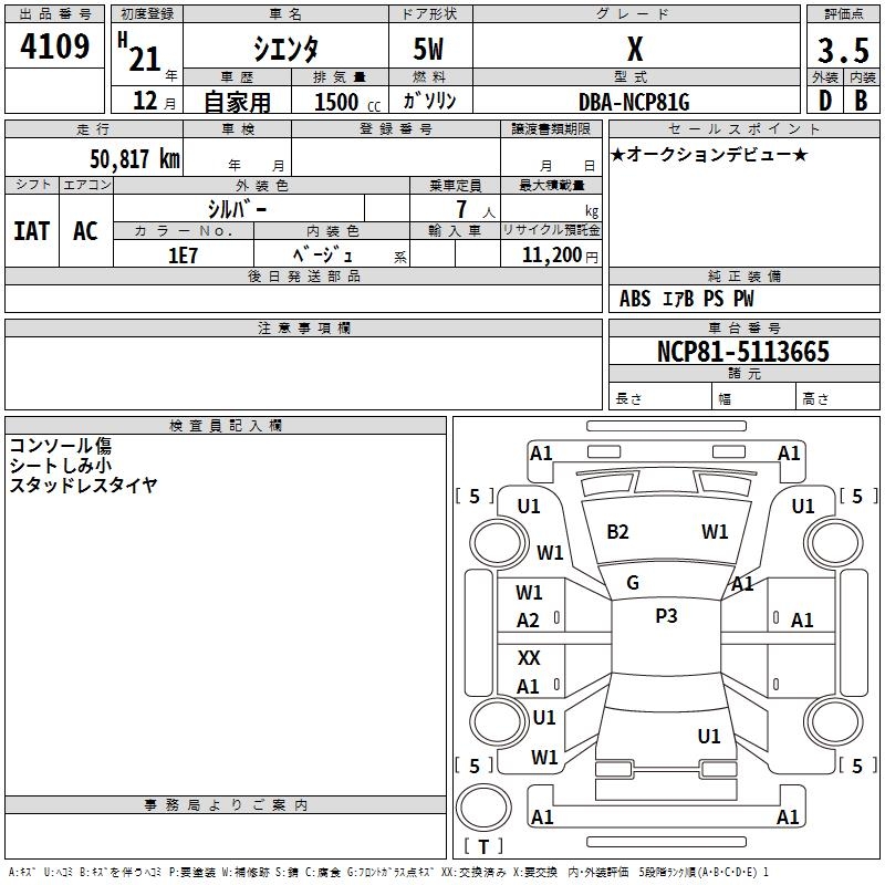 TOYOTA SIENTA X - лот 4109
