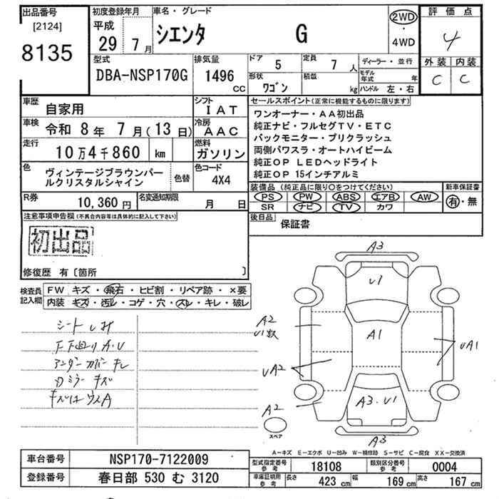 TOYOTA SIENTA G - лот 8135