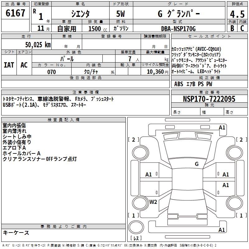 TOYOTA SIENTA G GRAN PA- - лот 6167