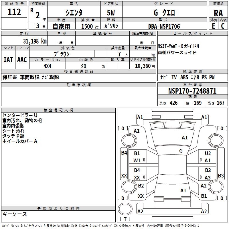 TOYOTA SIENTA GKERO - лот 112