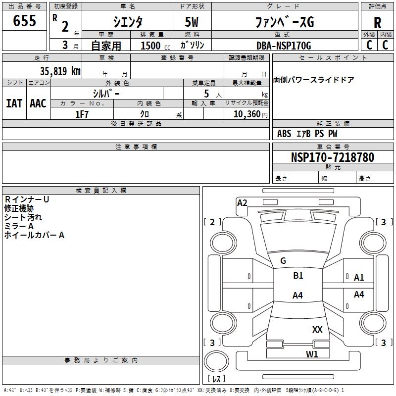 TOYOTA SIENTA FAN BASE G - лот 655
