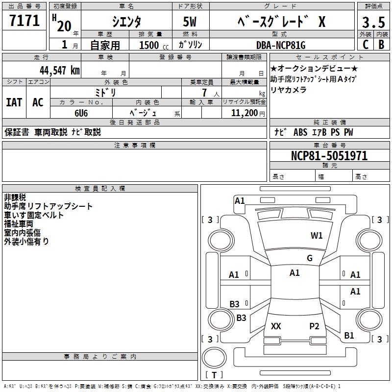 TOYOTA SIENTA BASE GRADE X - лот 7171