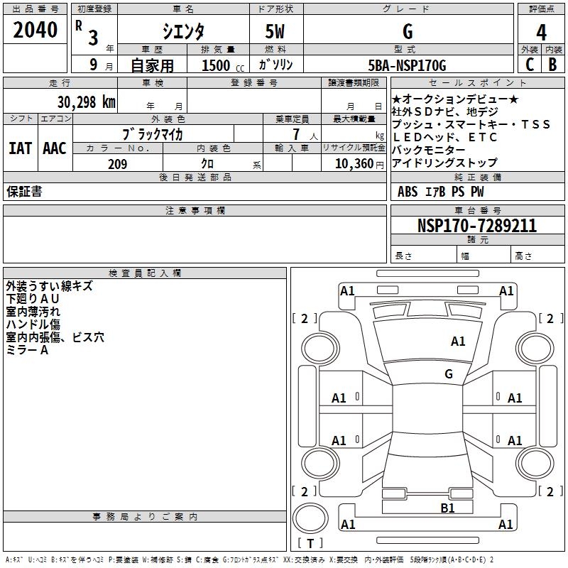 TOYOTA SIENTA G - лот 2040