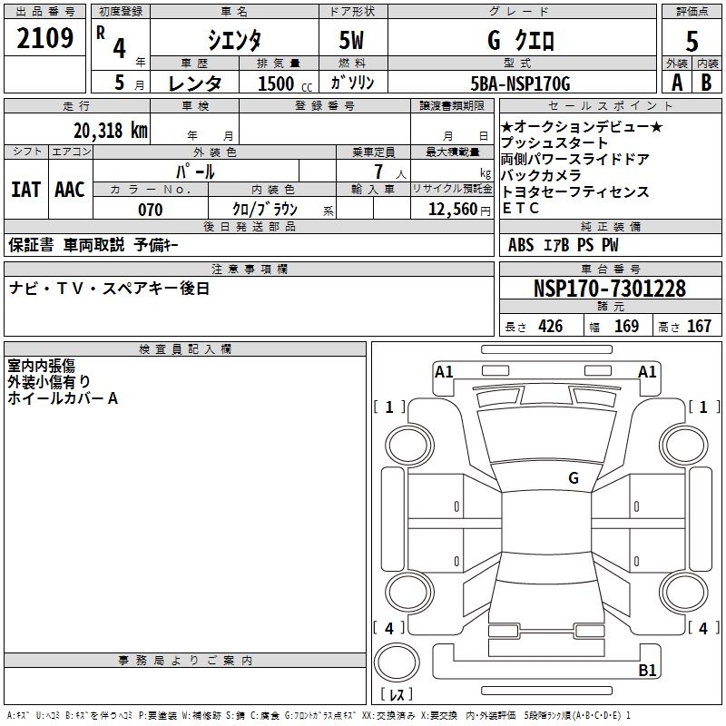 TOYOTA SIENTA GKERO - лот 2109