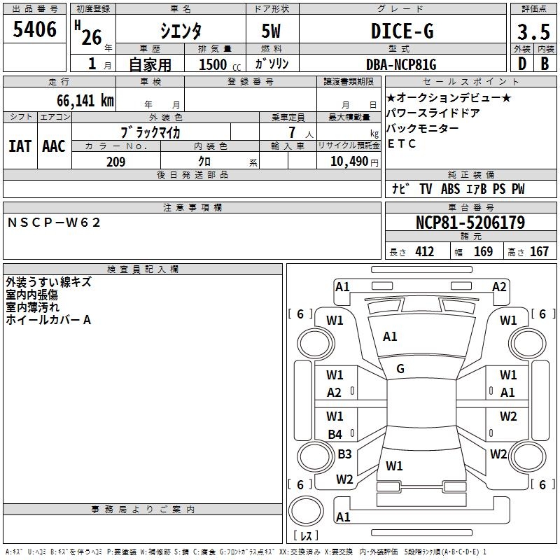 TOYOTA SIENTA DICE-G - лот 5406