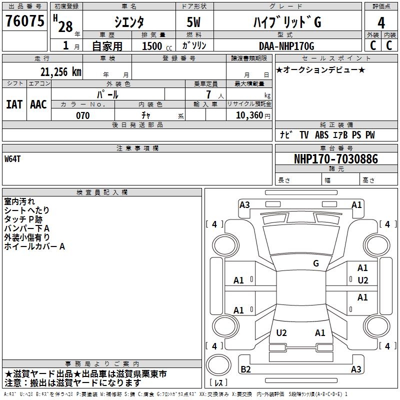 TOYOTA SIENTA HYBRID G - лот 76075