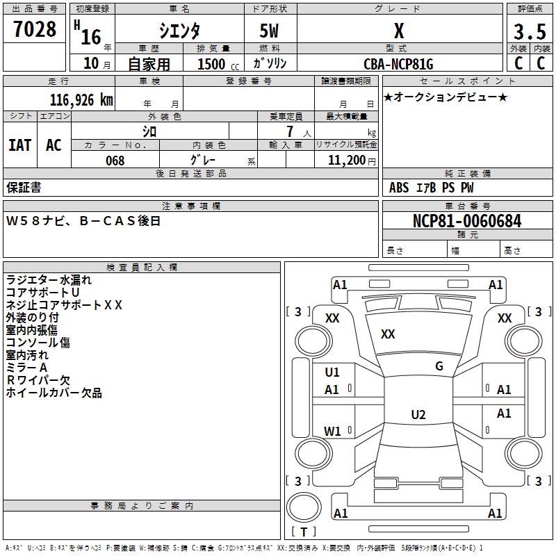 TOYOTA SIENTA X - лот 7028