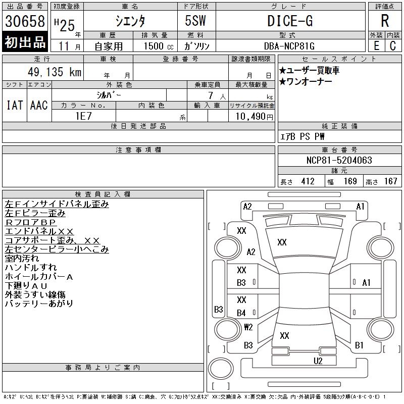 TOYOTA SIENTA DICE-G - лот 30658