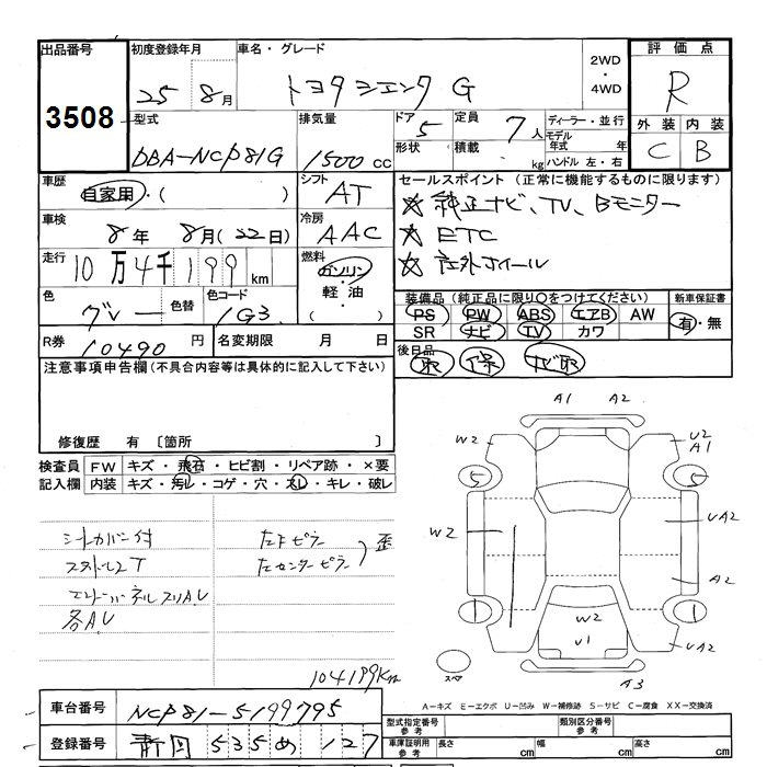 TOYOTA SIENTA G - лот 3508