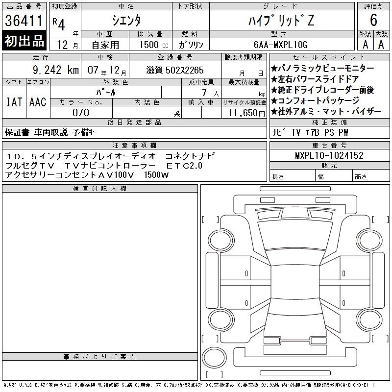 TOYOTA SIENTA HYBRID Z - лот 36411