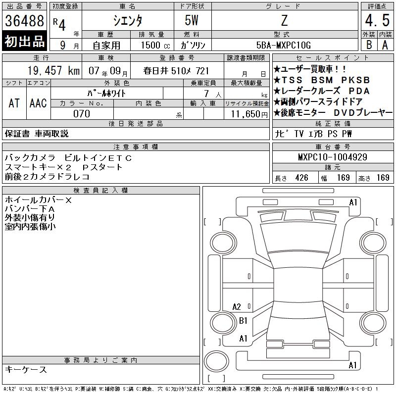 TOYOTA SIENTA Z - лот 36488