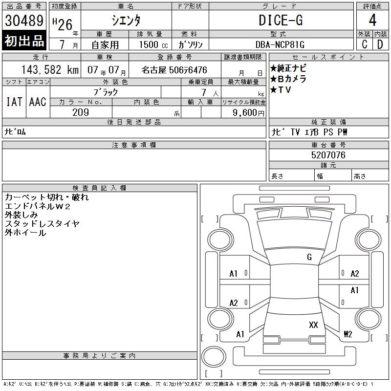 TOYOTA SIENTA DICE-G - лот 30489