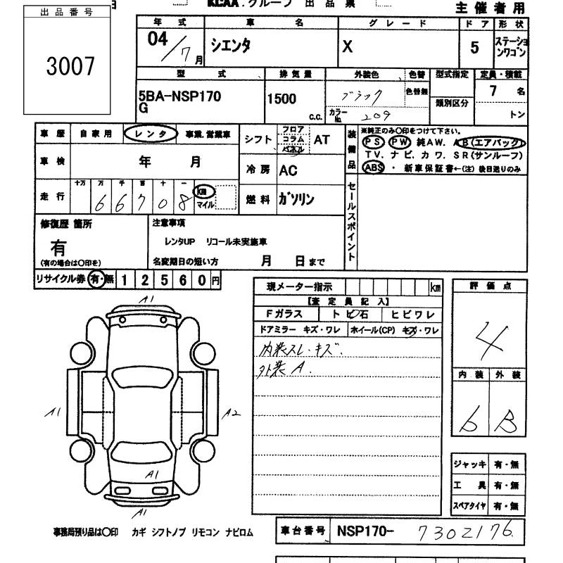 TOYOTA SIENTA X - лот 3007
